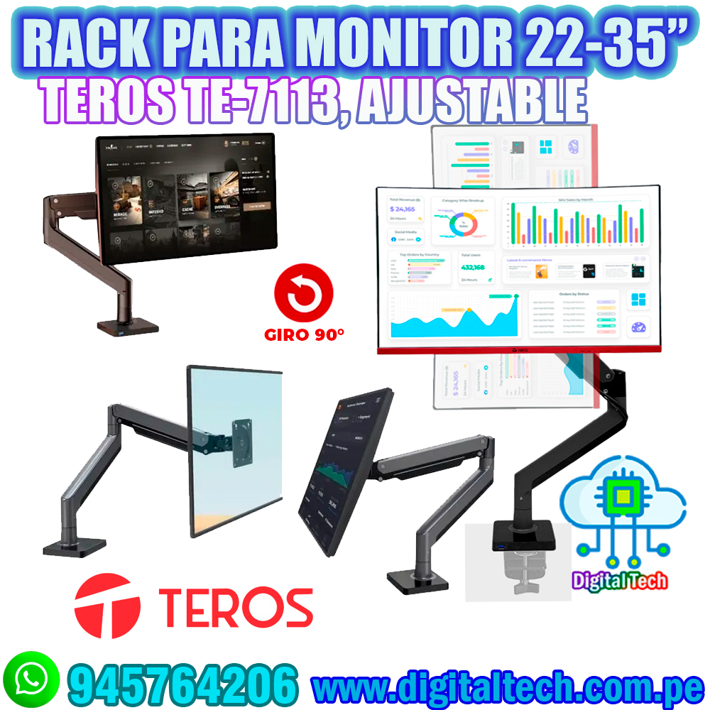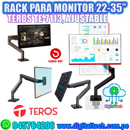 Brazo soporte Teros TE-7113 para monitor de 22 A 35 Pulgadas, rack ajustable