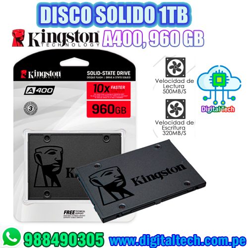 SSD Disco Solido KINGSTON A400, 960GB, SATA 6.0 GB/S, 2.5″, 7MM.