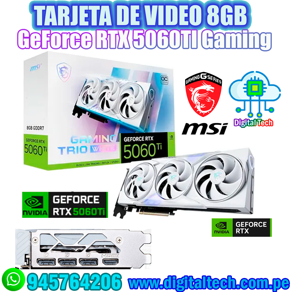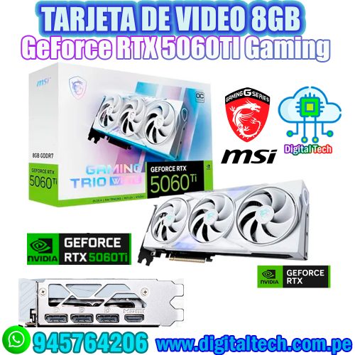 Tarjeta de video MSI NVIDIA GeForce RTX 5060TI 8G GAMING TRIO OC Blanco GDDR7 HDMI DP